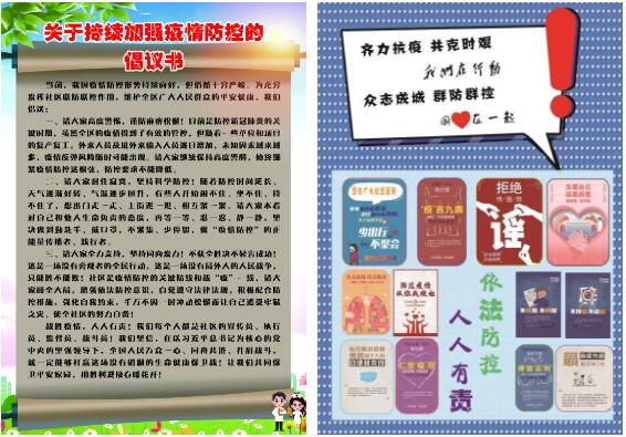 街道社區(qū)和集團印發(fā)了《新冠肺炎防控知識手冊》、《關于持續(xù)加強疫情防控的倡議書》等宣傳手冊、宣傳頁,對新型冠狀病毒感染的肺炎的相關知識進行了答疑解惑。目前我國疫情防控形勢持續(xù)好轉,但疫情尚未解除,現階段境外輸入日益加劇,疫情防控不容麻痹松懈,提醒居民出入務必佩戴好口罩,做好個人防護,如有省外返濟或境外旅居史的要及時上報。